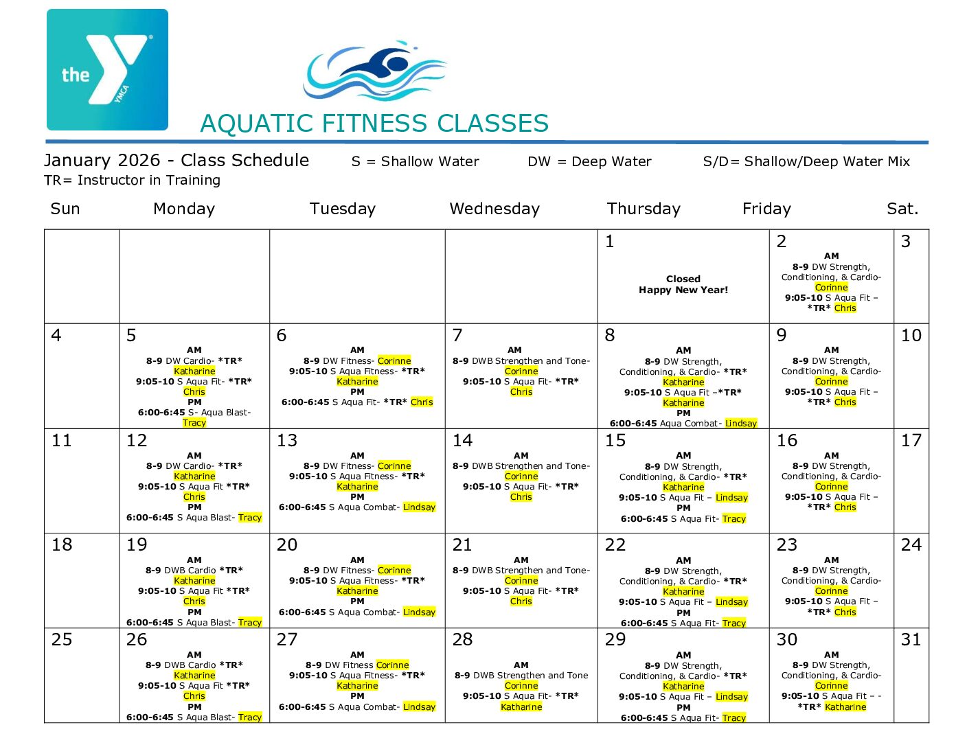 Water Aerobics Schedule
