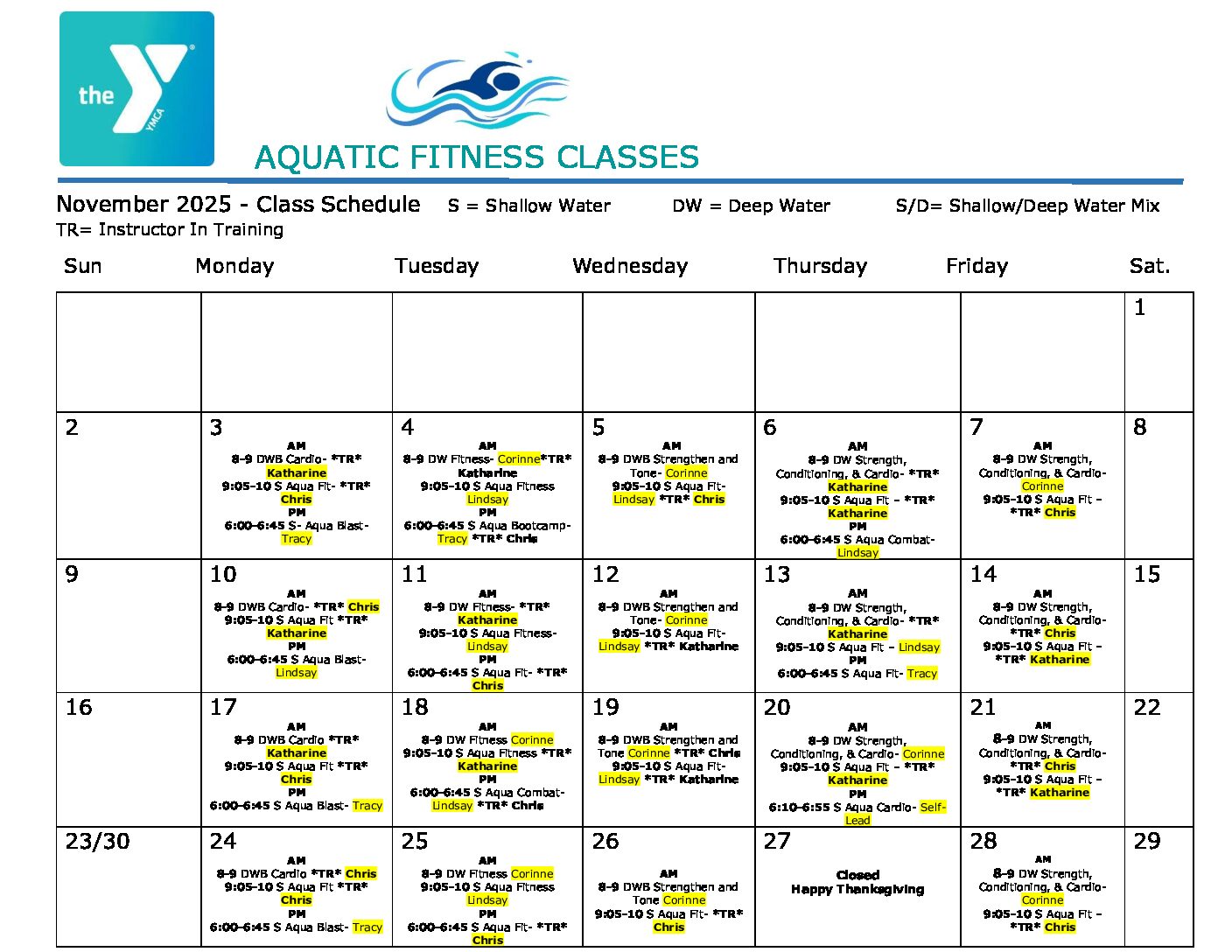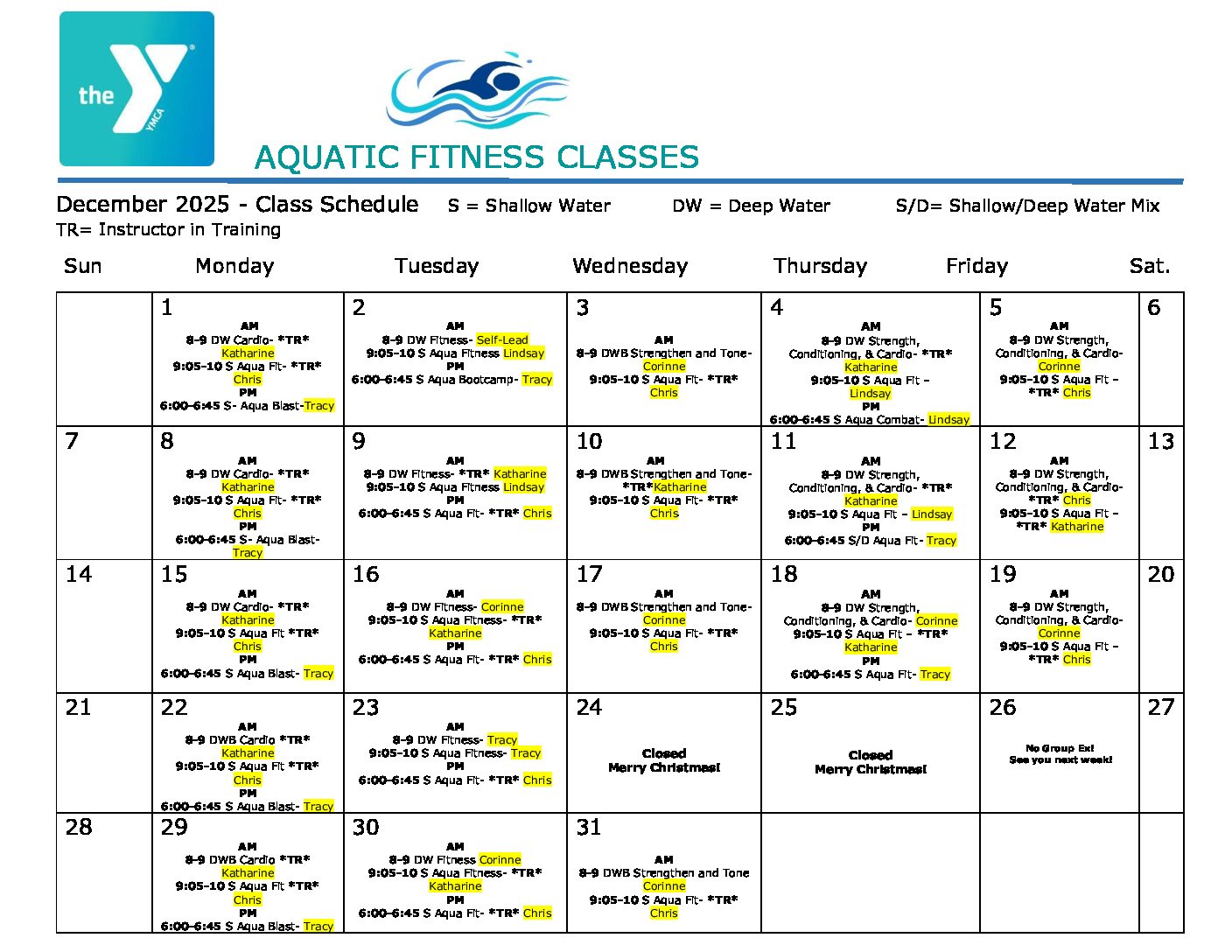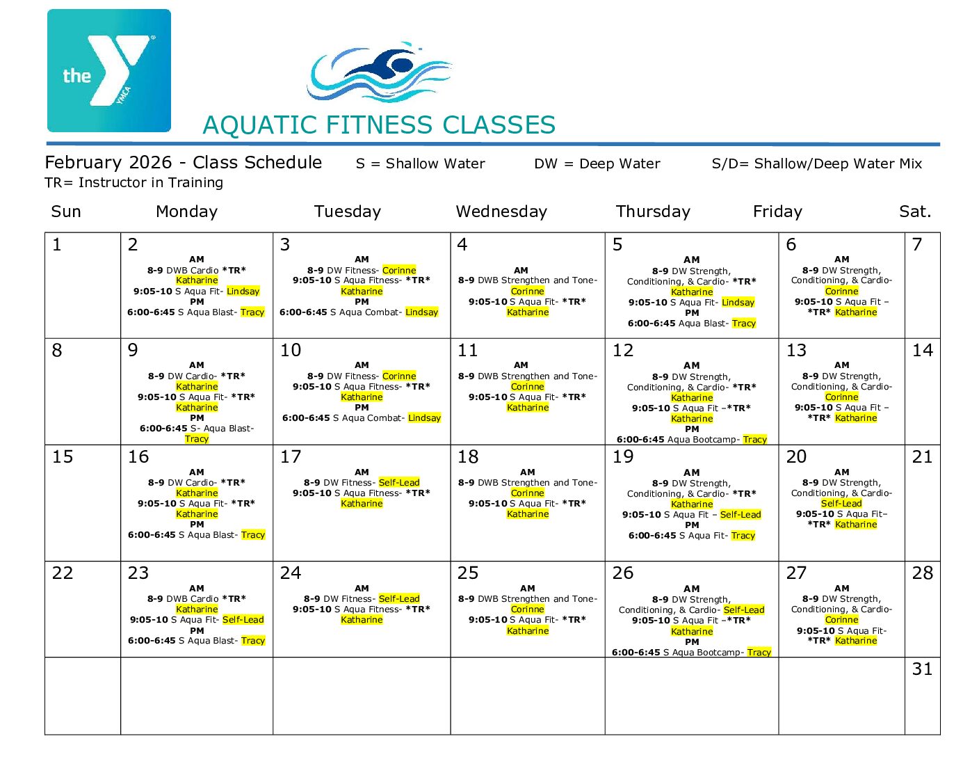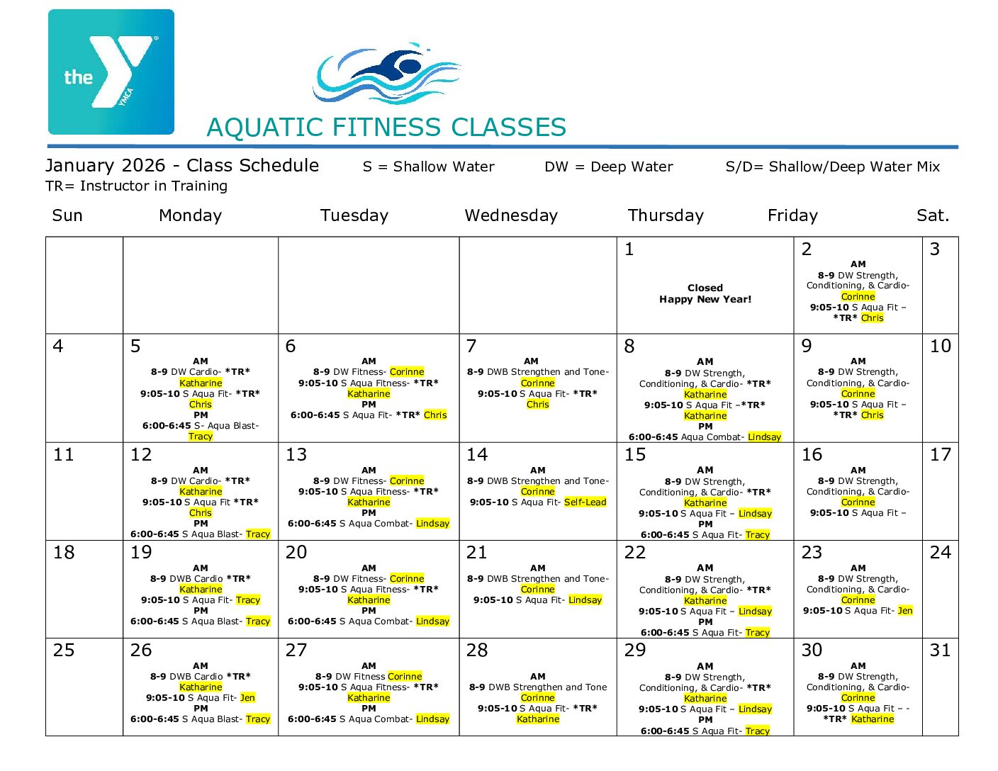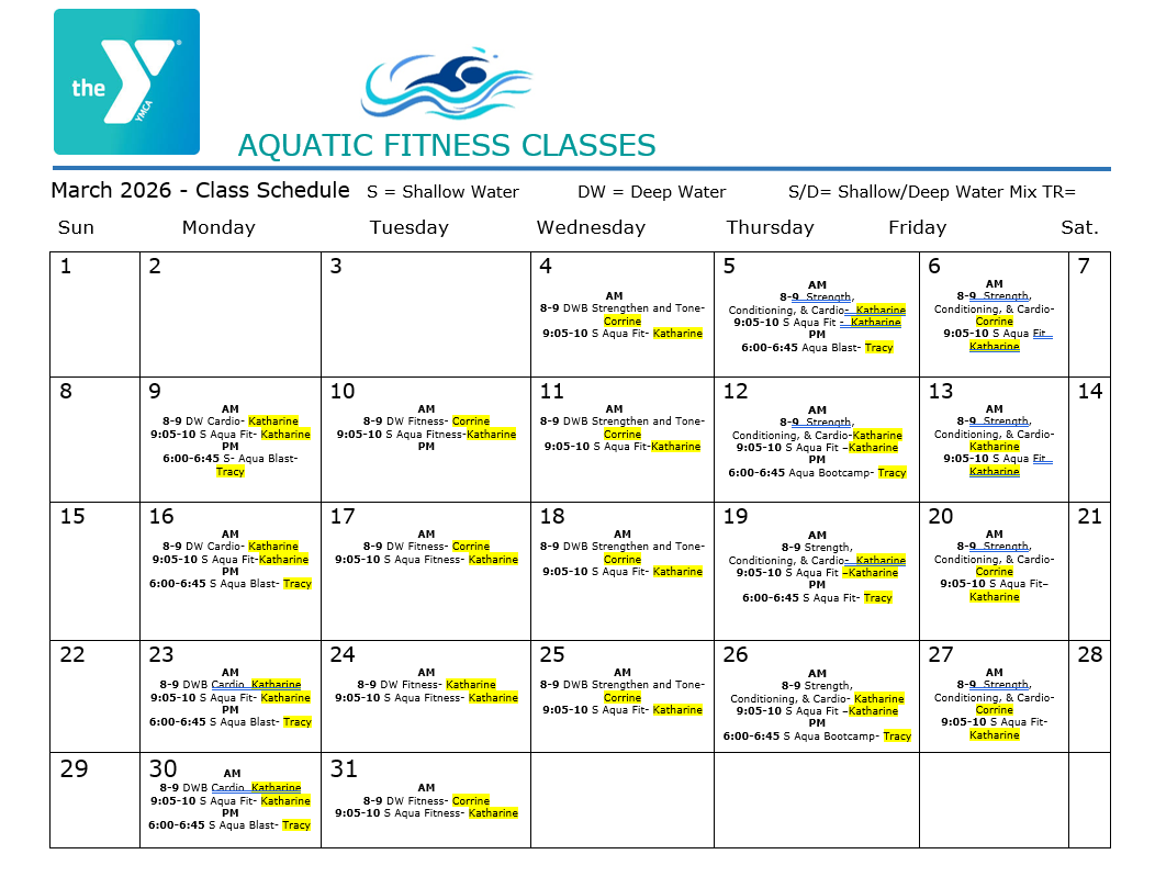 Water Aerobics Schedule