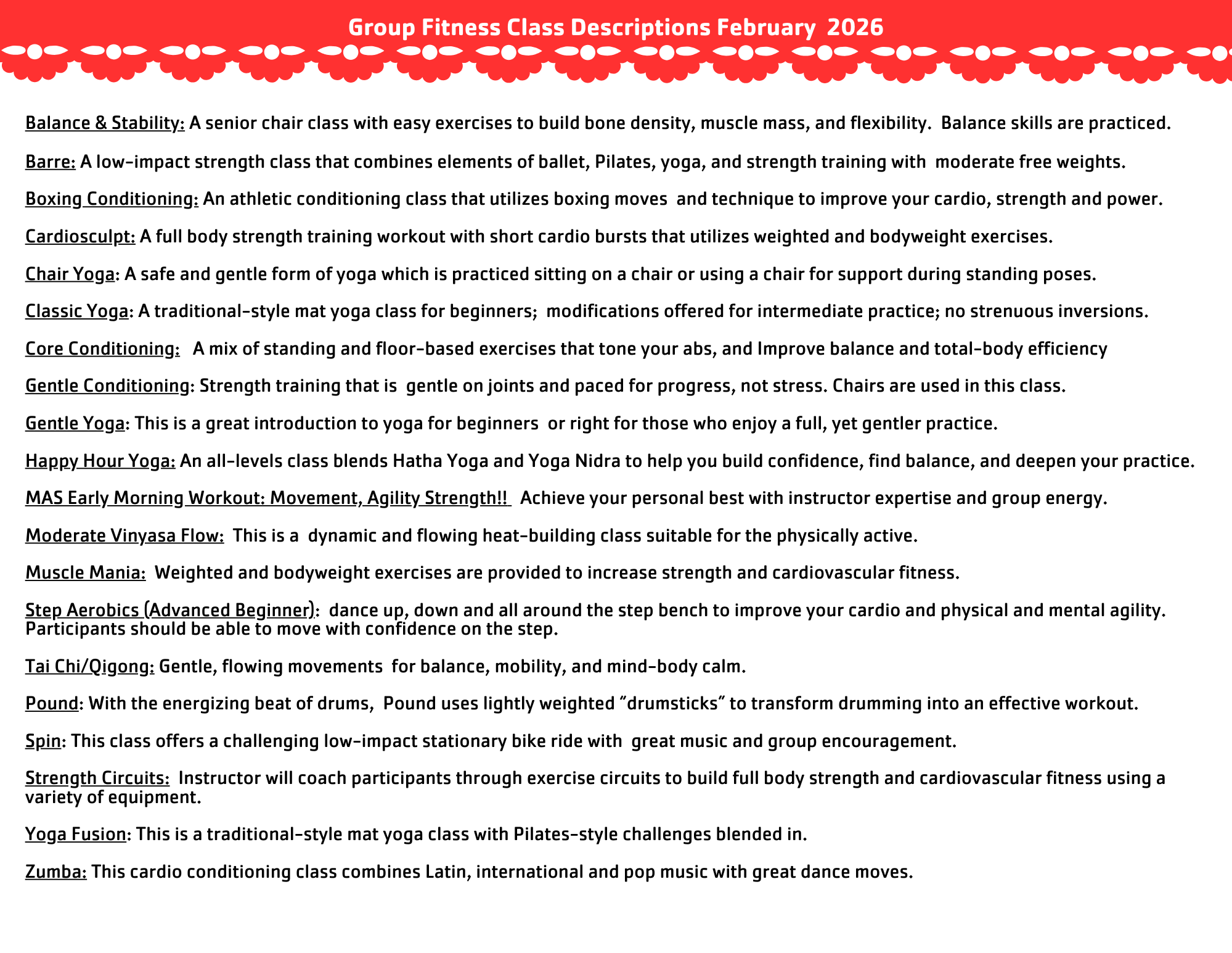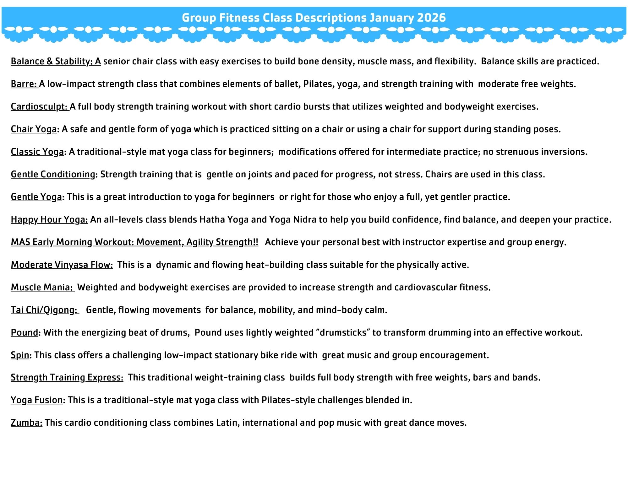 Group Fitness Class Schedule
