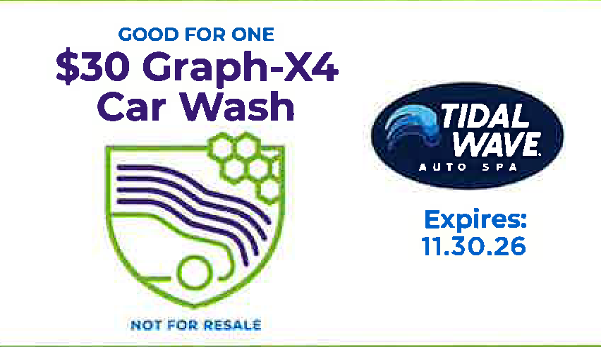 Stop by the front desk and purchase a gift card for $10 and gift your family and friends a $30 Graph -X4 Car Wash- includes Free Vacuums to use after your wash.